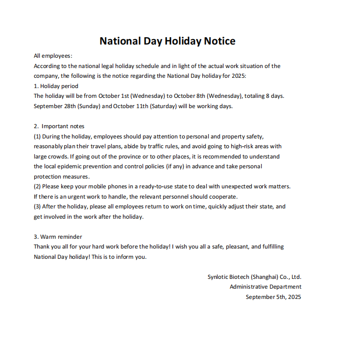 Obchody Dnia Narodowego i zawiadomienie o świętach