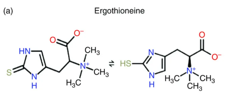 Ergotioneina (EGT) jest naturalnie występującym aminokwasem, który występuje zarówno w postaci tiolowej, jak i tionowej struktury izomerycznej. Izomer tionu dominuje w fizjologicznym pH, nadając ergotioneinie wyjątkowo silne właściwości przeciwutleniające.