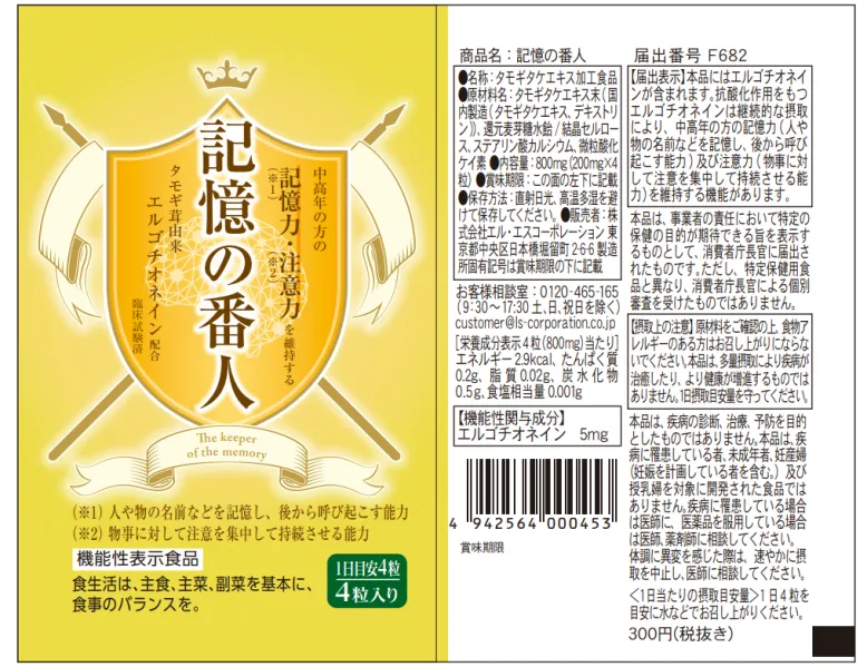 Suplement ergotioneiny wprowadzony na rynek przez japońską firmę LS Corporation to produkt opracowany w celu przeciwdziałania zaburzeniom pamięci u osób w średnim i starszym wieku.