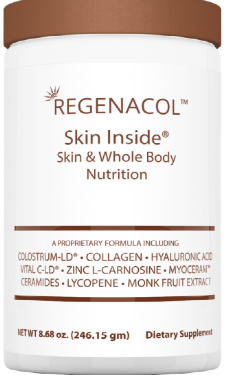 Regenacol doustny suplement kosmetyczny zawiera siarę bydlęcą, witaminę C, peptydy kolagenu bydlęcego i likopen. Likopen może zwiększać poziom prokolagenu (prekursora kolagenu), co pomaga spowolnić starzenie się skóry i chronić skórę przed uszkodzeniami powodowanymi przez promienie ultrafioletowe.
